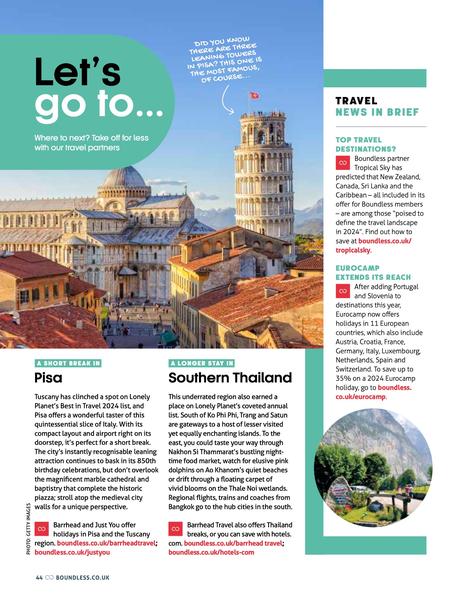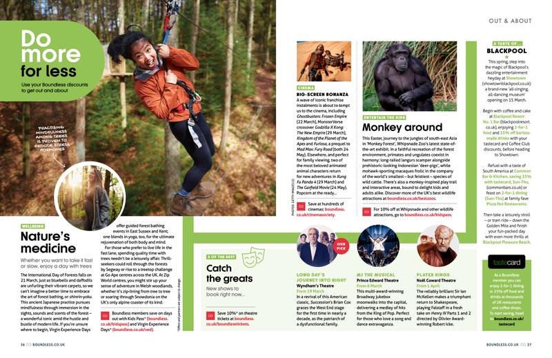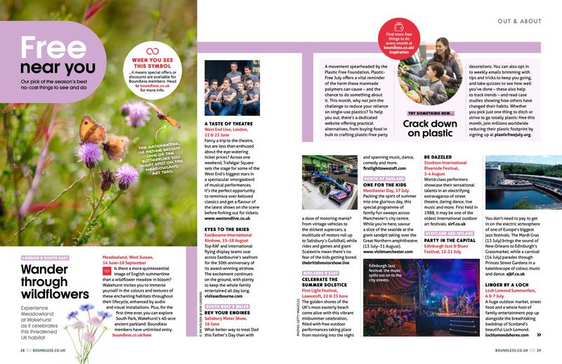 Boundless magazine is mailed to 150,000 Boundless members (public and civil service sector workers, current and retired). The magazine helps members make the most of their free time, with content focused on travel, days out, motoring, wellbeing, money saving and family life.
